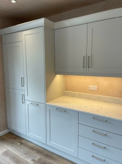 Paul was meticulous in his work, and we could not fault any of it. He was helpful and quickly sorted problems out that were not foreseen at the start of the project. We are really pleased with our new kitchen, the quality and finish is first class. We are happy for Paul to bring anyone to see his work.
